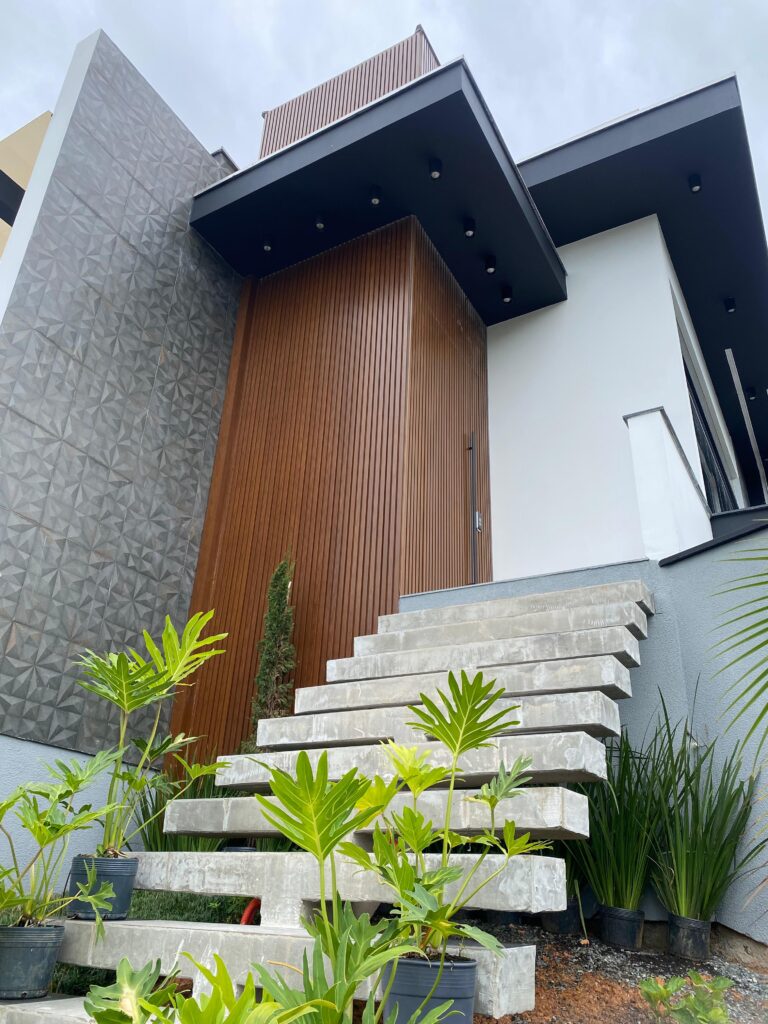 Design moderno e resistência unidos em um só produto. Portas ripadas que transmitem sofisticação e aconchego, com acabamento amadeirado premium e a durabilidade do alumínio.